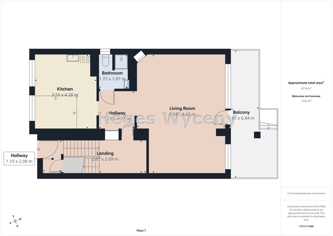 - salon (wcześniej z aneksem kuchennym) z wyjściem na balkon.