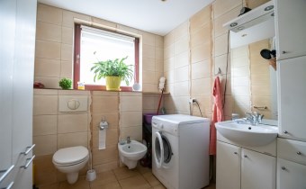 - kuchnia, łazienka, WC, spiżarnia i taras – płytki ceramiczne.